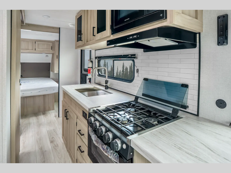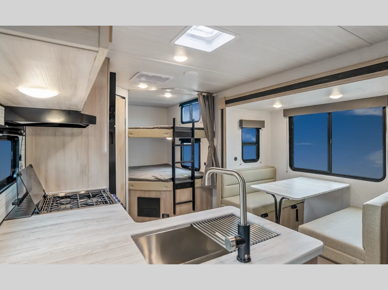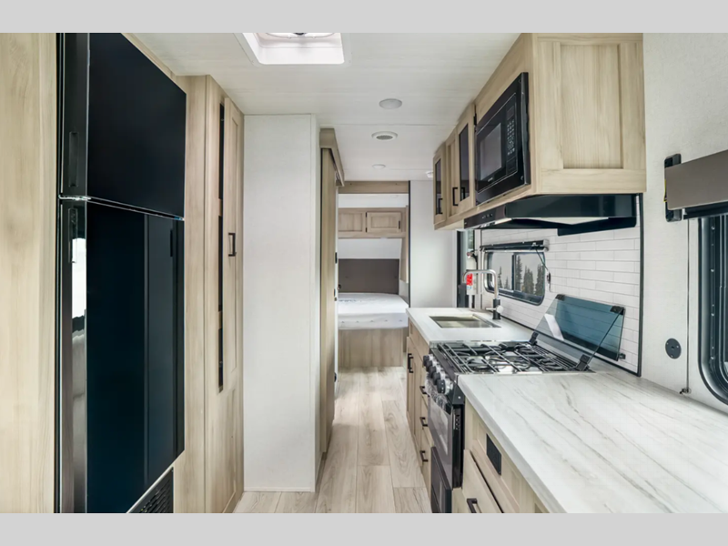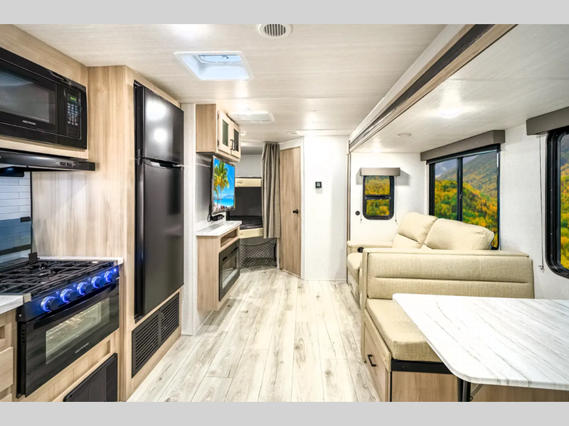 Sleeps 7 Slides 1 Length 24 ft 4 in Ext Width 8 ft Ext Height 10 ft 10 in Int Height 6 ft 9 in Hitch Weight 550 lbs Dry Weight 4948 lbs Cargo Capacity 2602 lbs Fresh Water Capacity 40 gals Grey Water Capacity 30 gals Black Water Capacity 30 gals Furnace BTU 35000 btu Available Beds Queen Refrigerator Type 12V Refrigerator Size 10.7 cu ft Cooktop Burners 3 Shower Size 30" x 36" Number of Awnings 1 Water Heater Type Tankless AC BTU 15000 btu Awning Info 14' Electric with LED Lights Axle Count 2 Shower Type Standard Similar Floorplans
