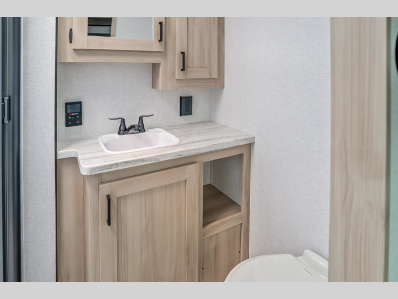 Sleeps 5 Slides 1 Length 29 ft 10 in Ext Width 8 ft Ext Height 11 ft 3 in Int Height 6 ft 9 in Hitch Weight 685 lbs Dry Weight 6073 lbs Cargo Capacity 1612 lbs Fresh Water Capacity 40 gals Grey Water Capacity 60 gals Black Water Capacity 30 gals Furnace BTU 35000 btu Available Beds King Refrigerator Type 12V Refrigerator Size 10.7 cu ft Cooktop Burners 3 Shower Size 30" x 36" Number of Awnings 1 Water Heater Type Tankless AC BTU 15000 btu Awning Info 18' Electric with LED Lights Axle Count 2 Shower Type Standard Similar Floorplans