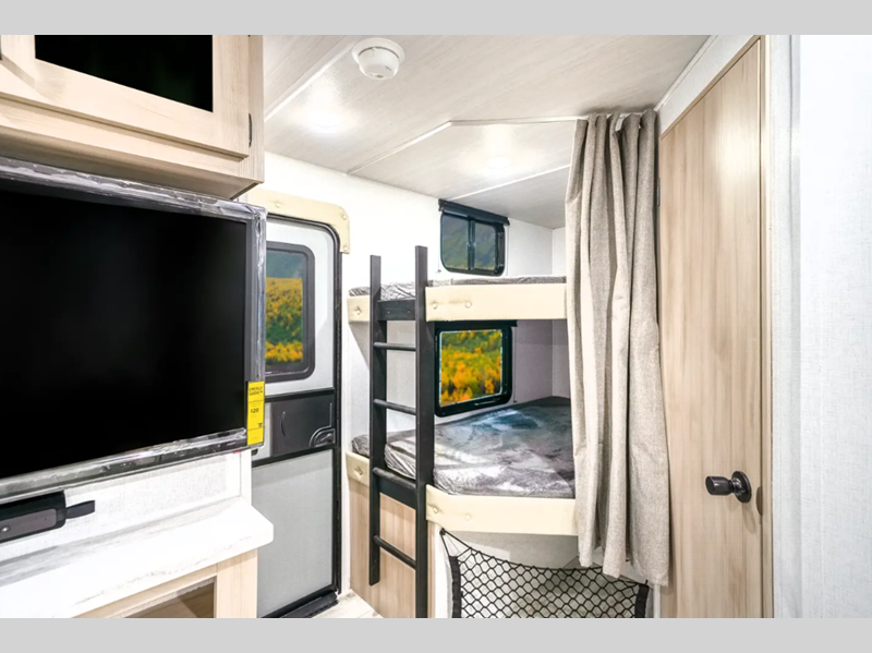 Sleeps 8 Slides 1 Length 31 ft 11 in Ext Width 8 ft Ext Height 11 ft 3 in Int Height 6 ft 9 in Hitch Weight 820 lbs Dry Weight 7043 lbs Cargo Capacity 2577 lbs Fresh Water Capacity 40 gals Grey Water Capacity 60 gals Black Water Capacity 30 gals Furnace BTU 35000 btu Number Of Bunks 2 Available Beds King Refrigerator Type 12V Refrigerator Size 10.7 cu ft Cooktop Burners 3 Shower Size 30" x 36" Number of Awnings 1 Water Heater Type Tankless AC BTU 15000 btu Awning Info 20' Electric with LED Lights Axle Count 2 Washer/Dryer Available Yes Shower Type Standard Electrical Service 50 amp Similar Floorplans